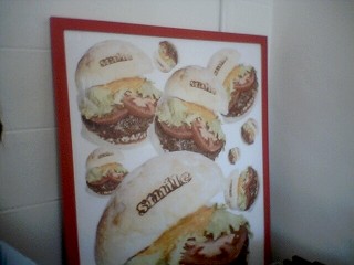 オーダをし、席につき、ふと側を見ると、多分この店のポスターなのでしょう。ハンバーガーが写っています。