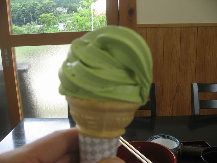 里の駅大原にある食堂で、抹茶ソフトをいただきました。しょぼいデジカメで撮ったせいで、ボケボケです。