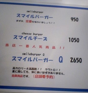 そして、このメニューの一番下。スマイルバーガーQには何やら威勢のいいコピーが書いてあります。