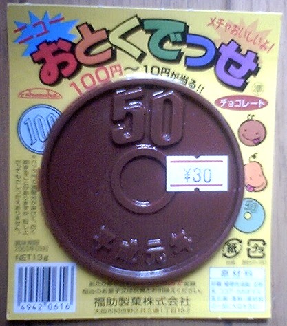 はい。50円です。どこから見ても50円ですね。これが駄菓子屋さんで売られていました。では、なぜこれが錬金術なのでしょう?次の写真を見てみましょう。