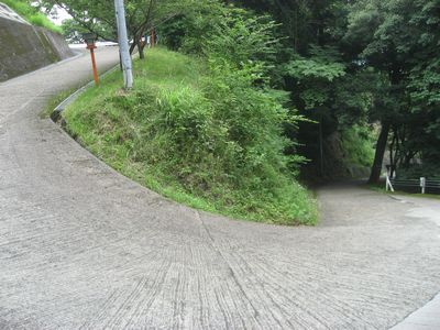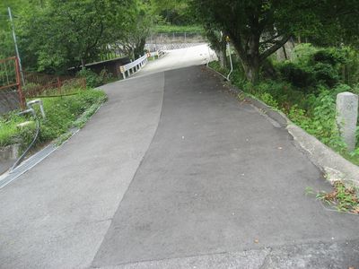 ゴルフ場への道は、きつめの坂道になっています。