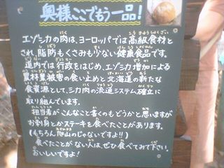 そういえば、千歳空港から列車に乗るとき、南ふらのではおいしい鹿カレーの店が沢山有るというチラシが有りました。まあ、最近、北海道の森林では増えすぎたシカによる被害が拡大していると聞きますし、村興しを兼ねてこういう変わりダネの料理を出す所も多いのでしょう。シカにとっては災難でしょうが。