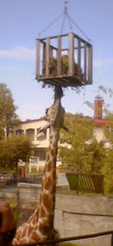 多分、この箱は、キリンの食事の際に出来るだけ首を伸ばさせるために工夫したものでしょう。一所懸命にエサを食べています。