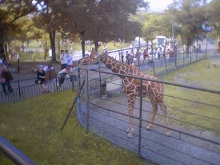 この箱を使っての餌やり。近くに説明の係員がいたせいか、見物客が黒山の人だかりとなっていました。でも、すぐ隣には子供のキリンがいたのですが、何故か周りにはお客さんは居ませんでした。