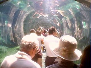 ガラナ飲料のウンチクはここまでにしましょう。私はまず「ペンギン」の飼育場に行きました。飼育場の建物に着くと、なにやら長い行列が出来ています。その列についていくと、水槽のトンネルに出くわしました。